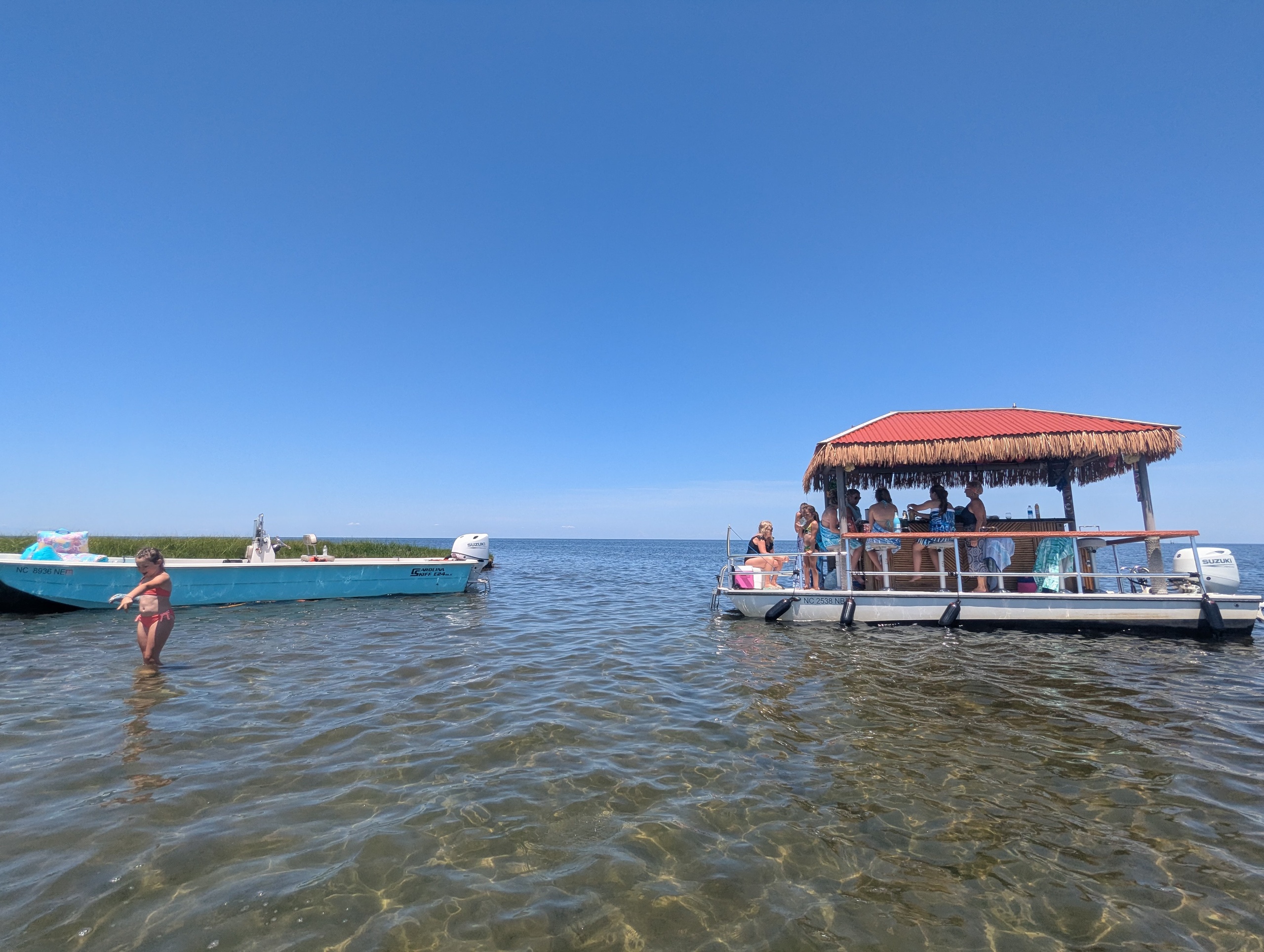 Each vessel can accommodate up to 6 guests, so this option is ideal for larger groups, families, or anyone who wants a little extra space to spread out and enjoy the morning. If your party prefers to stay together, we’ll tie the Tiki and Skiff side by side, creating one big floating hangout where everyone can laugh, relax, and soak up the sun together. It’s like having your own private island — only better!