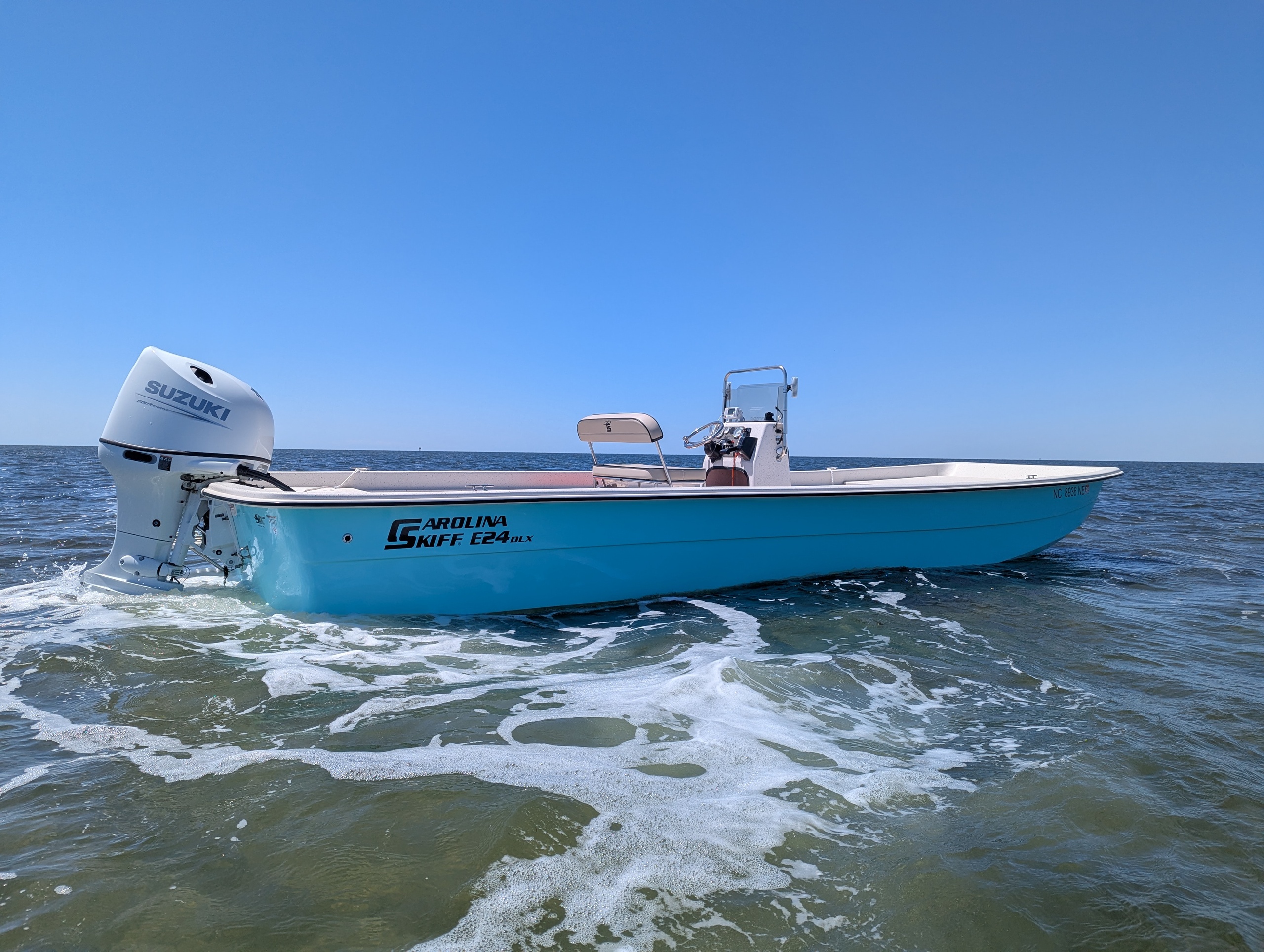 If you’re hoping to drop a line while you cruise, the Skiff is the ideal boat to bring along your fishing gear. Just keep in mind — we’re not fishermen, so you’ll need to bring all your own equipment and make sure everyone who plans to fish has a valid North Carolina fishing license. But the calm evening waters and golden-hour glow make it a fantastic time to cast a line.