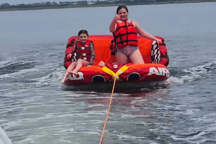 Our tubing charter includes everything you need for an amazing day on the water! You’ll enjoy a towable tube, a comfortable boat, and a variety life jackets in different sizes. However, feel free to bring your own if you have one! Safety is our top priority, so our experienced captain and first mate will be on board to ensure a secure and fun trip. Plus, we provide a cooler filled with ice and bottled water to keep you refreshed throughout the adventure!