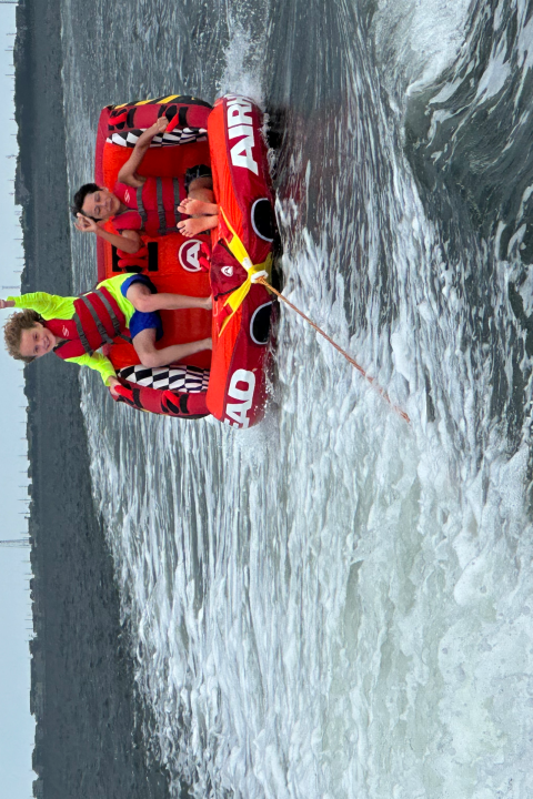 Perfect for a morning trill before the beach or a mid-day spin, our tubing adventure delivers all the action with none of the stress. No crowds, no waiting — just your crew, your tube, and a Skiff ready to make waves!