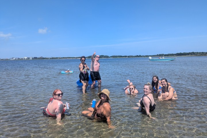 The sandbar itself is ideal for families and kids. The shallow, calm waters are safe for swimming, snorkeling, and exploring little fish—no rip currents, just safe, worry-free fun. Adults can relax on the sand or in the water with their favorite drinks—beer, seltzer, or cocktails—while enjoying the sun and the sounds of your favorite music blasting from our onboard speaker.