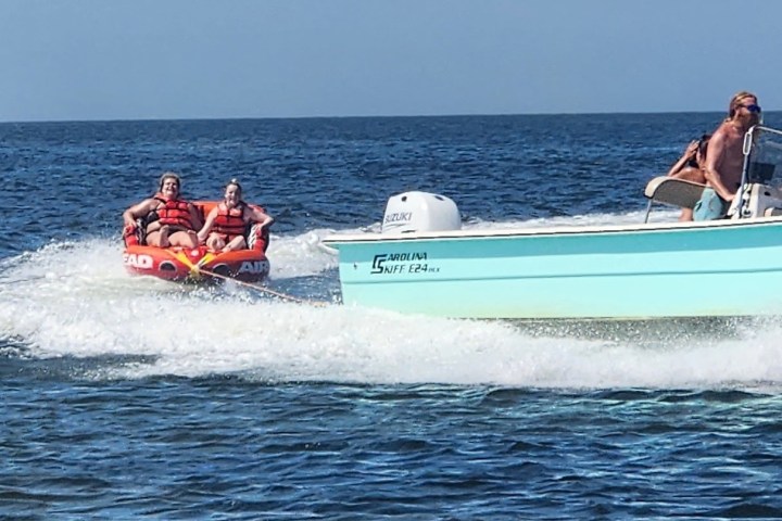 Once your crew is settled at the sandbar, the tubing adventure kicks off! We take groups of up to six into the deeper waters for thrilling tube rides while switching riders right at the sandbar, so everyone gets a turn to feel the rush. Splash, laugh, and ride as long as you like—our goal is pure fun for every guest.